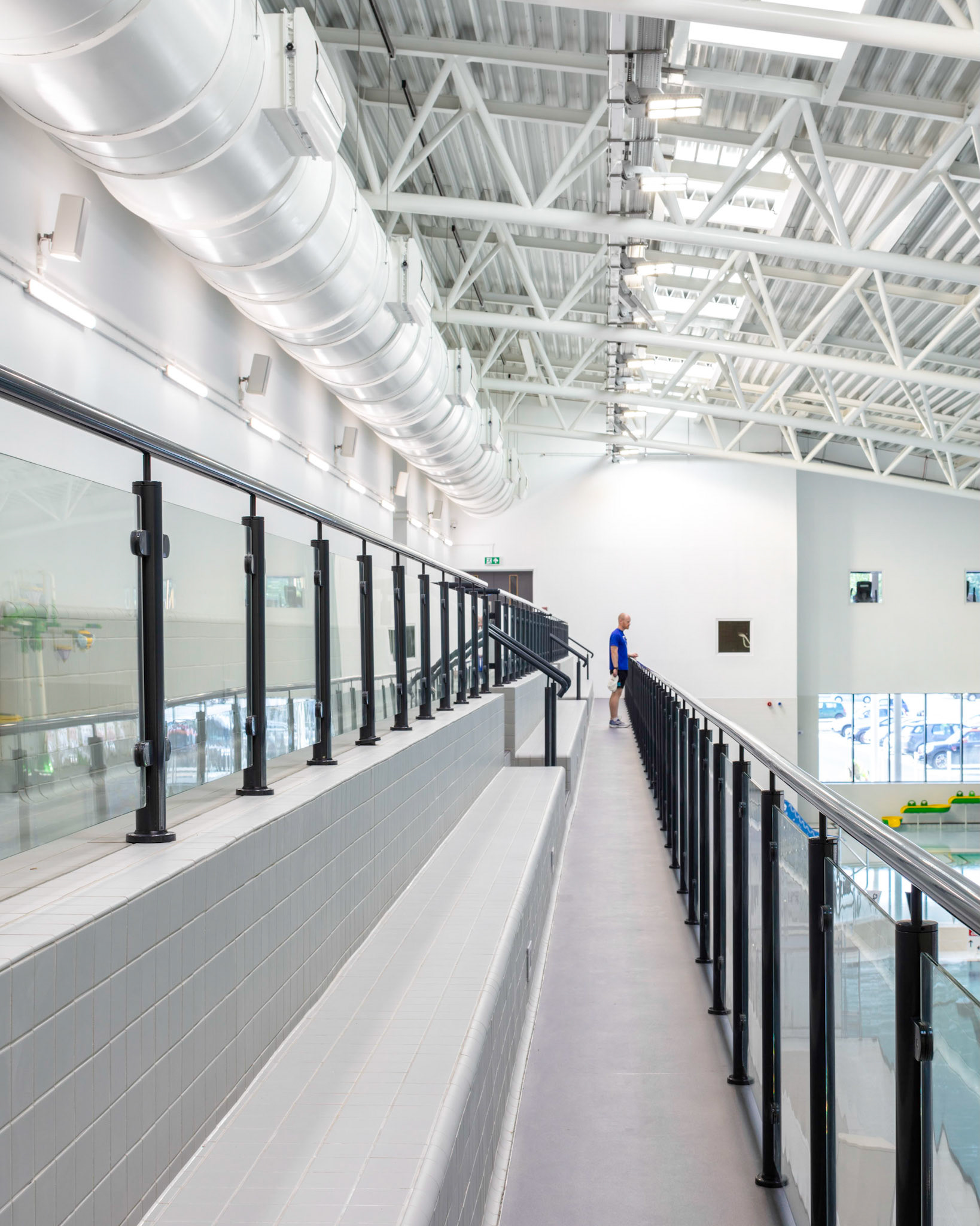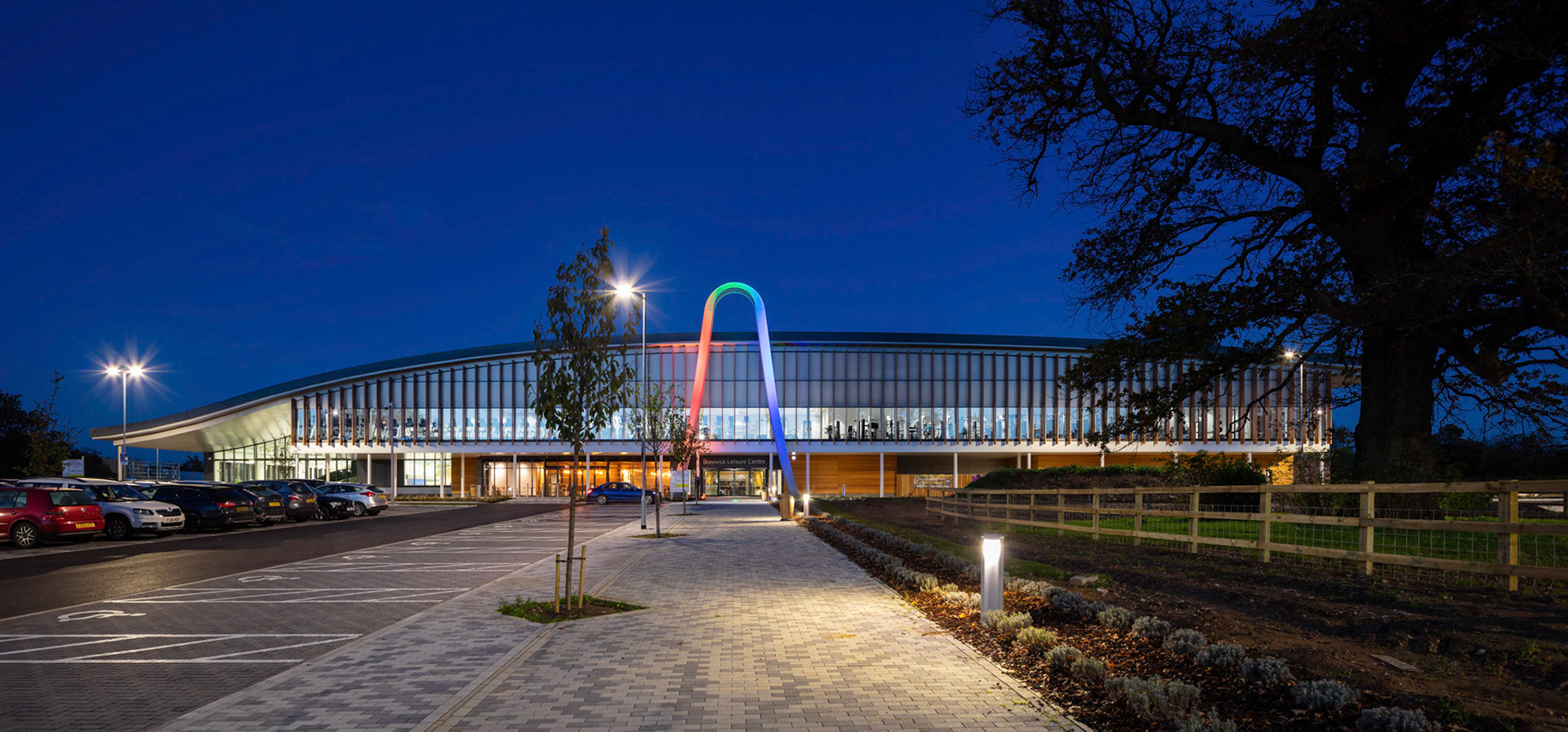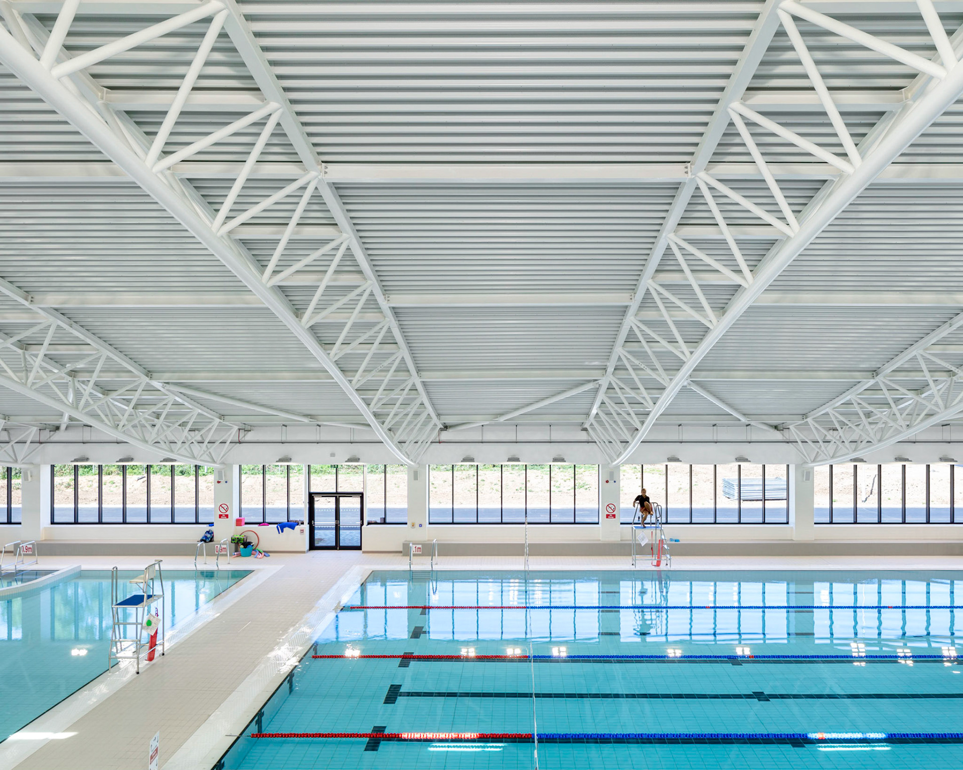 The Royal Borough of Windsor and Maidenhead have recently opened a new £33.4 million leisure centre in Maidenhead. Procured under the Scape National Construction Framework, the new centre replaces the current Magnet Leisure Centre and is designed to be a landmark community recreational facility for the area. Designed by Burke Rickhards Architects and built by Wates Construction, the centre comprises a main pool area, with a 10 lane 25m swimming pool plus other training and splash pools, changing facilities, two dance studios and a spinning studio, four squash courts, sauna and steam rooms and an 80 seater cafe. In addition, there is be a new hall to seat up to 650 people for sports and cultural events adjacent to the main sports hall. The ‘Street’ is the main architectural feature, made up of huge arched Glulam beams supporting a glass roof, which provides the main circulation area and the link to the external facilities.
