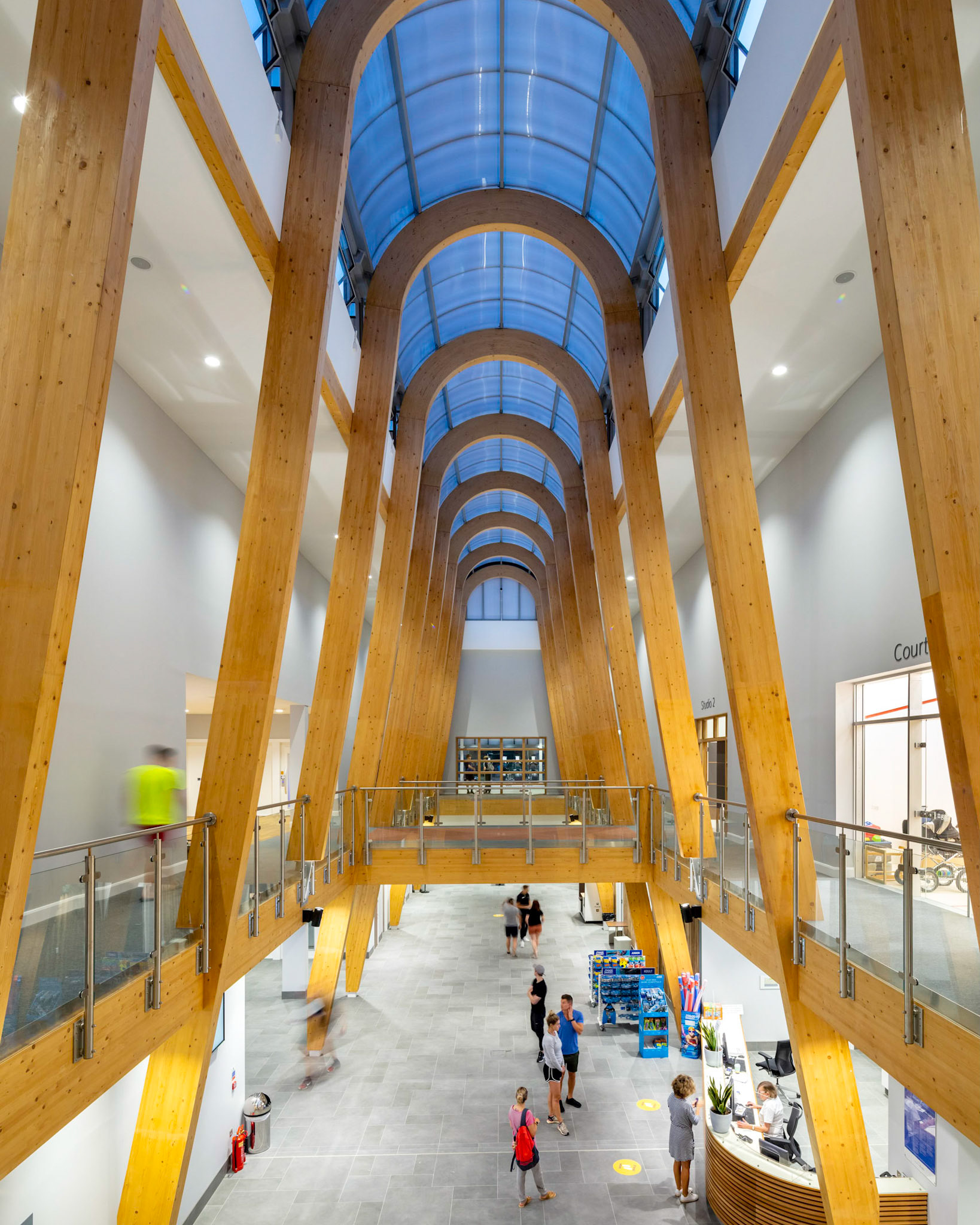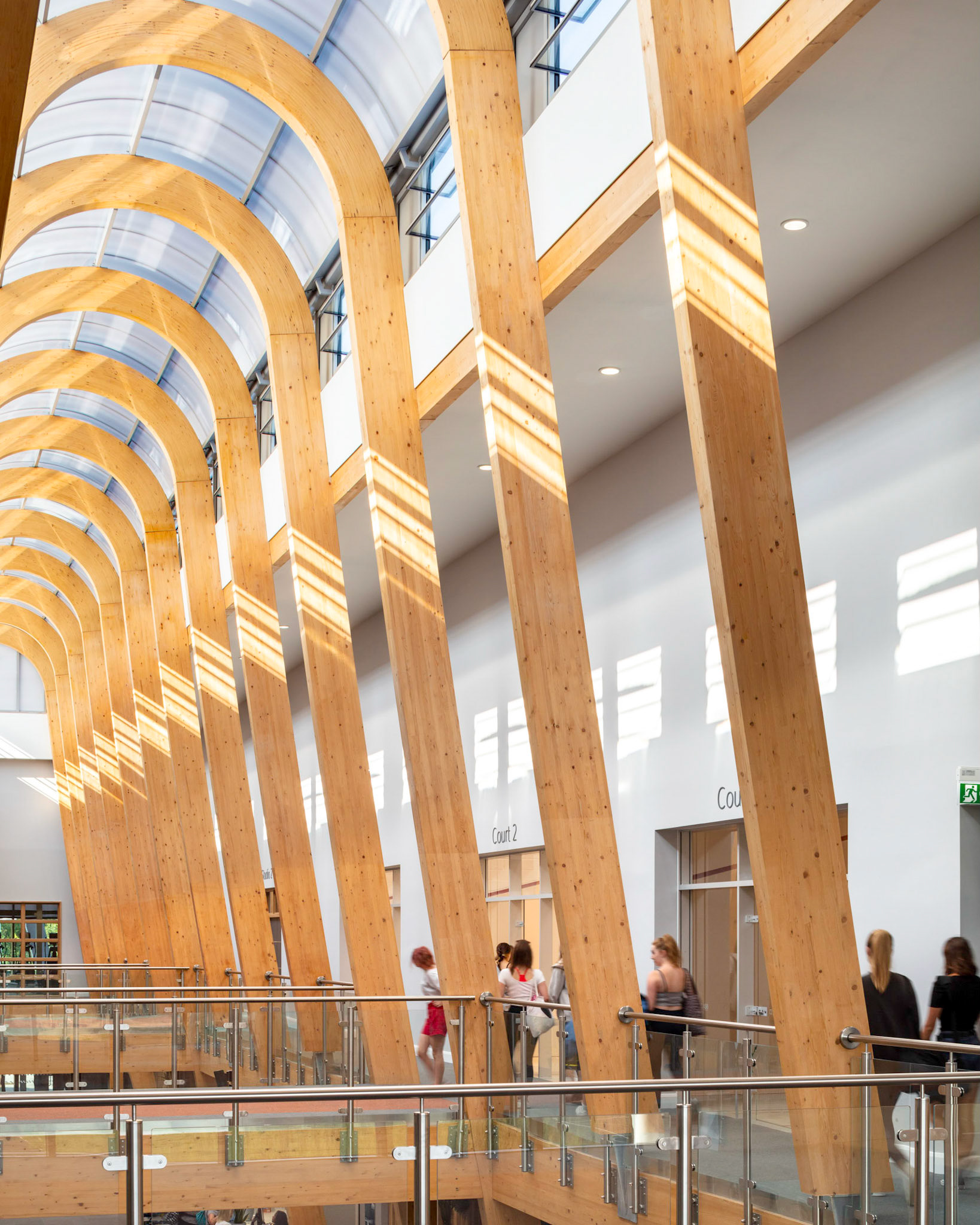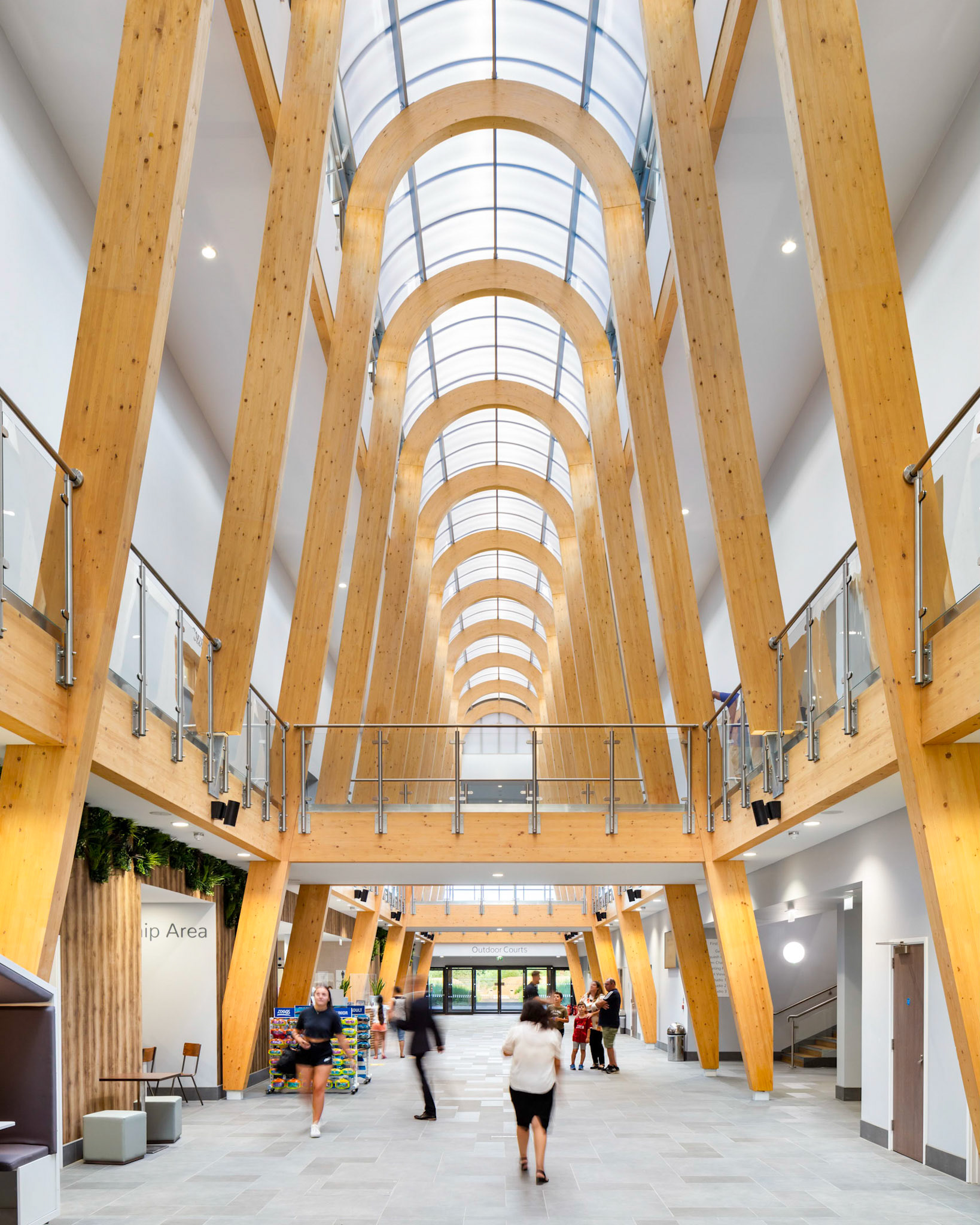 The Royal Borough of Windsor and Maidenhead have recently opened a new £33.4 million leisure centre in Maidenhead. Procured under the Scape National Construction Framework, the new centre replaces the current Magnet Leisure Centre and is designed to be a landmark community recreational facility for the area. Designed by Burke Rickhards Architects and built by Wates Construction, the centre comprises a main pool area, with a 10 lane 25m swimming pool plus other training and splash pools, changing facilities, two dance studios and a spinning studio, four squash courts, sauna and steam rooms and an 80 seater cafe. In addition, there is be a new hall to seat up to 650 people for sports and cultural events adjacent to the main sports hall. The ‘Street’ is the main architectural feature, made up of huge arched Glulam beams supporting a glass roof, which provides the main circulation area and the link to the external facilities.